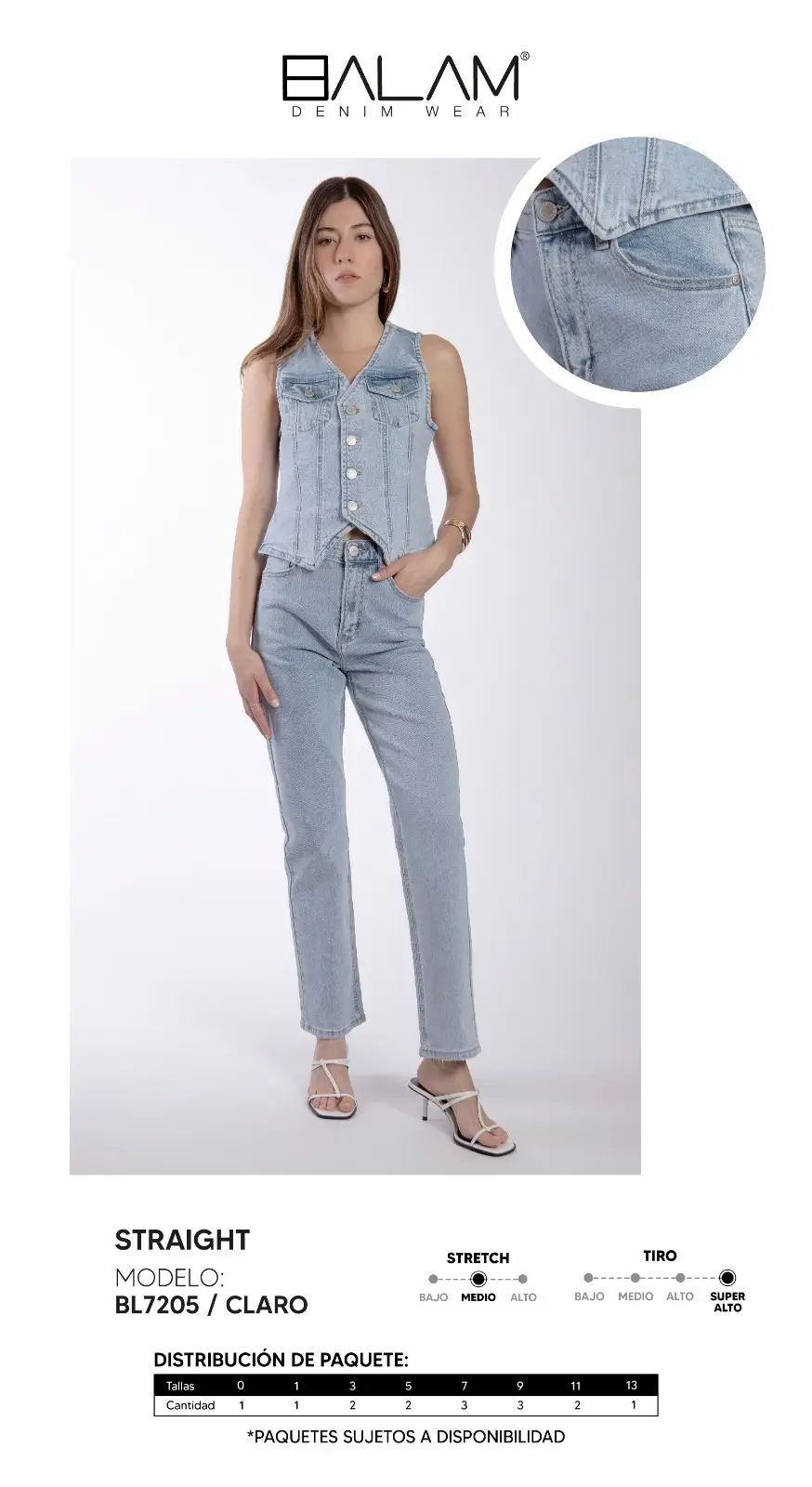Jean Straight BL7205 Claro BalamUn diseño clásico con un toque contemporáneo. Este jean de corte recto brinda un ajuste cómodo y favorecedor, ideal para cualquier ocasión. Su tono claro aporta frescura y versatilidad, mientras que su tiro súper alto estiliza la figura y resalta la cintura. Con stretch medio para mayor comodidad, es perfecto para crear looks casuales y modernos con facilidad.