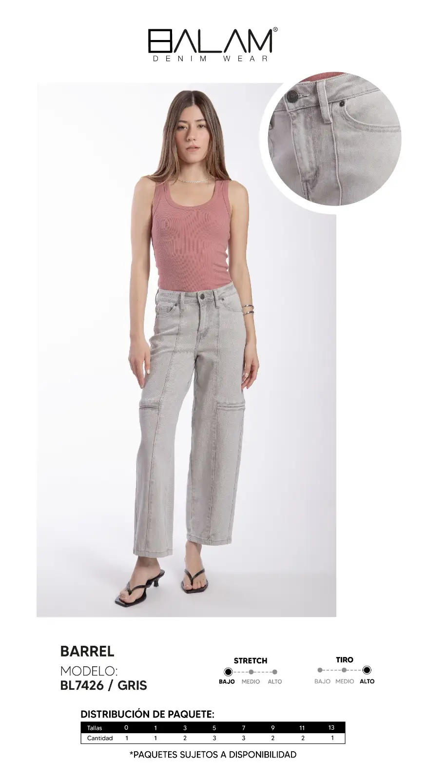 BARREL JEANS BALAM :BL7426 GRIS Atrévete a salir de lo clásico 🤍 El modelo BL7426 en gris llega con un fit barrel que está full en tendencia: más relajado, moderno y con mucha personalidad. Su diseño de tiro alto ayuda a marcar la cintura y equilibrar la silueta, mientras que su stretch bajo le da ese look más estructurado y auténtico del denim. Los detalles en costuras y su forma ligeramente amplia lo convierten en el jean perfecto para elevar cualquier outfit básico. El tono gris le da un vibe diferente y súper cool, ideal para quienes quieren variar del…