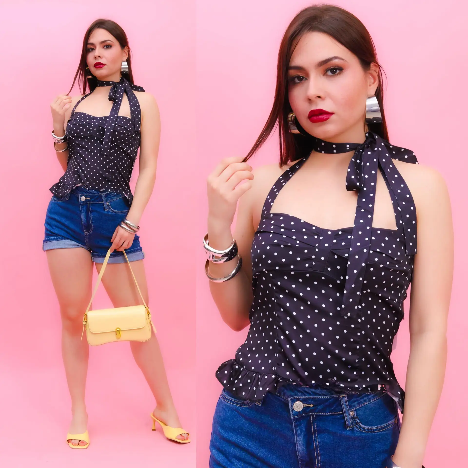 BLUSA-CORSET CON PUNTOS, SATINADA CON TIRANTES