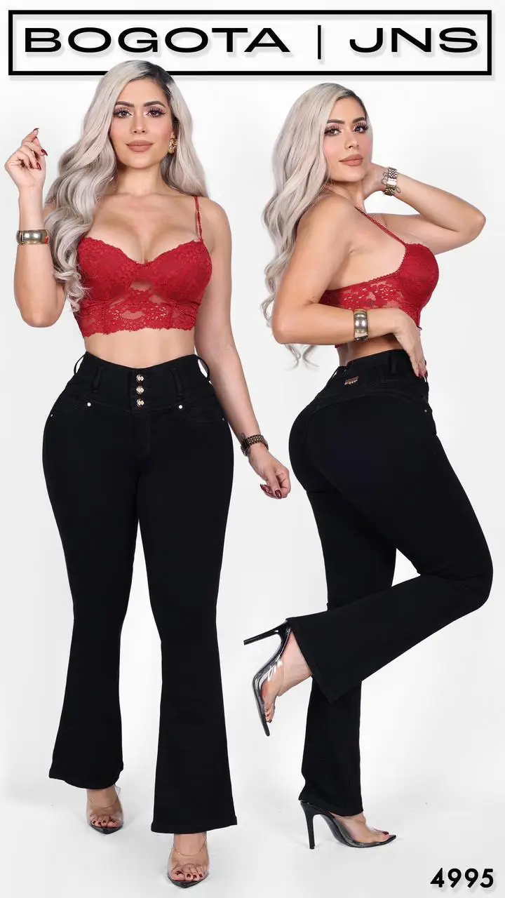FLARE JEANS BOGOTA LEVANTA POMPAS COLOR NEGRO
