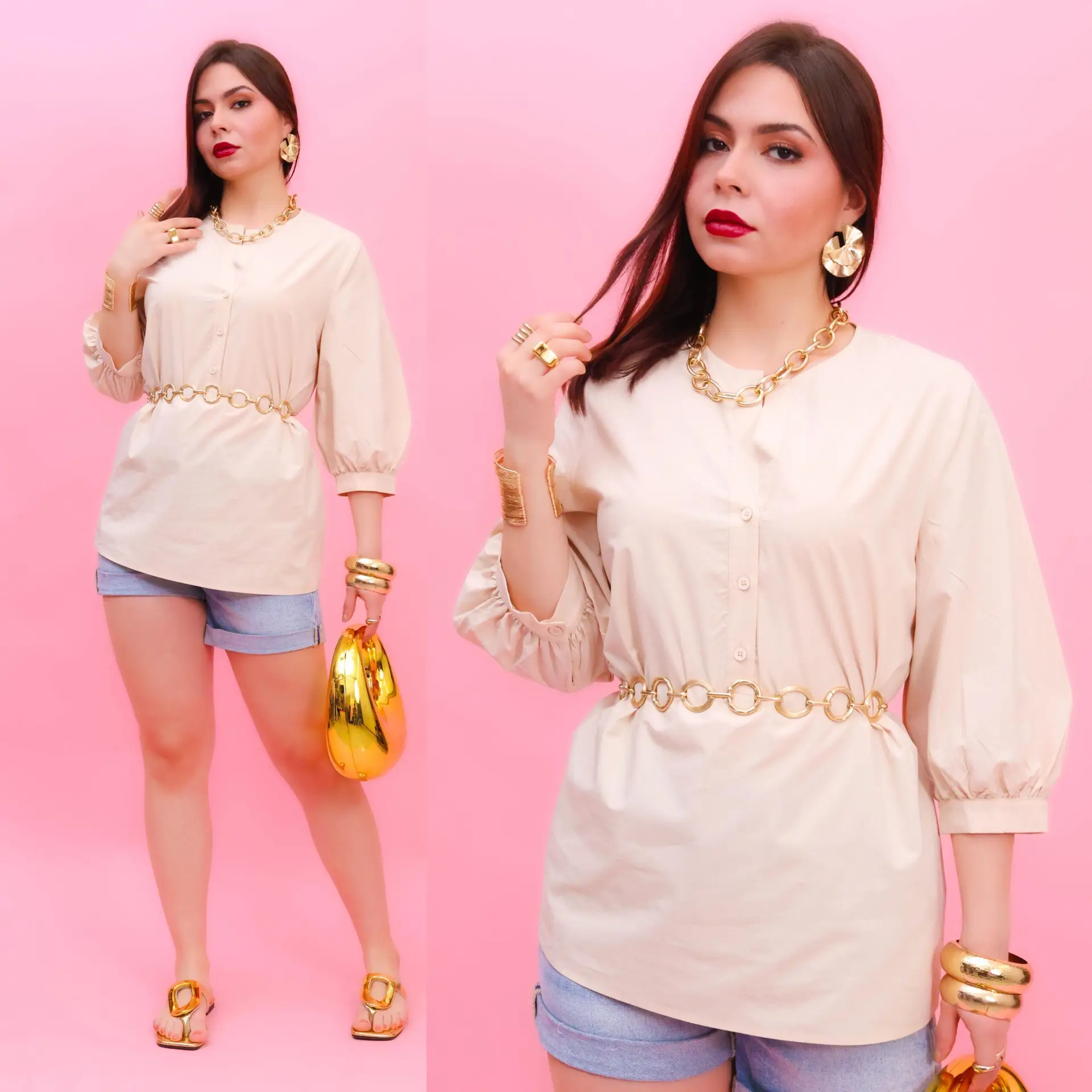 CAMISA RENACENTISTA CUELLO MAO Y ABOTONADO, MANGA 3/4. UNA PRENDA MUY COMODA Y FRANCA POR EL TIPO DE TELA