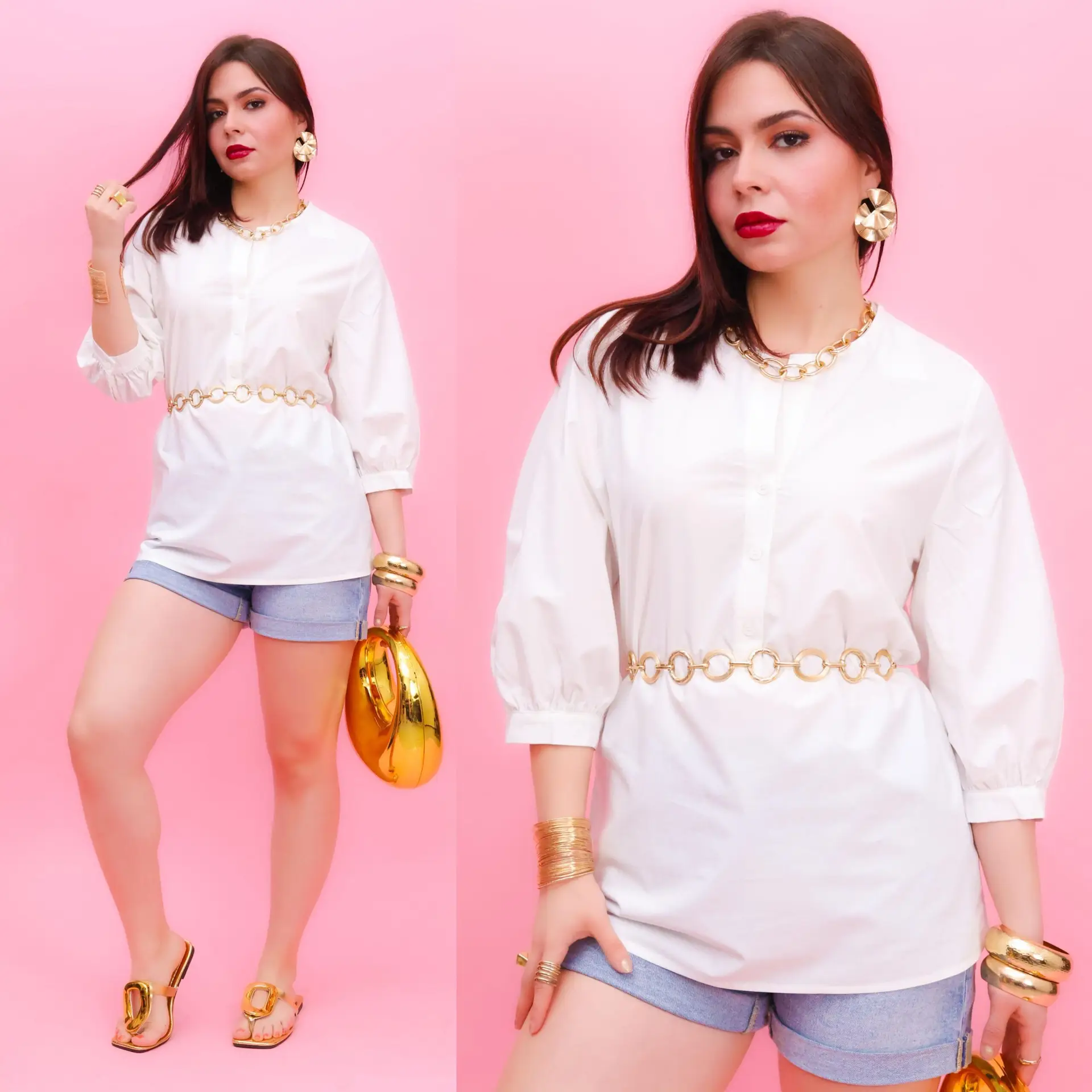 CAMISA RENACENTISTA CUELLO MAO Y ABOTONADO, MANGA 3/4.