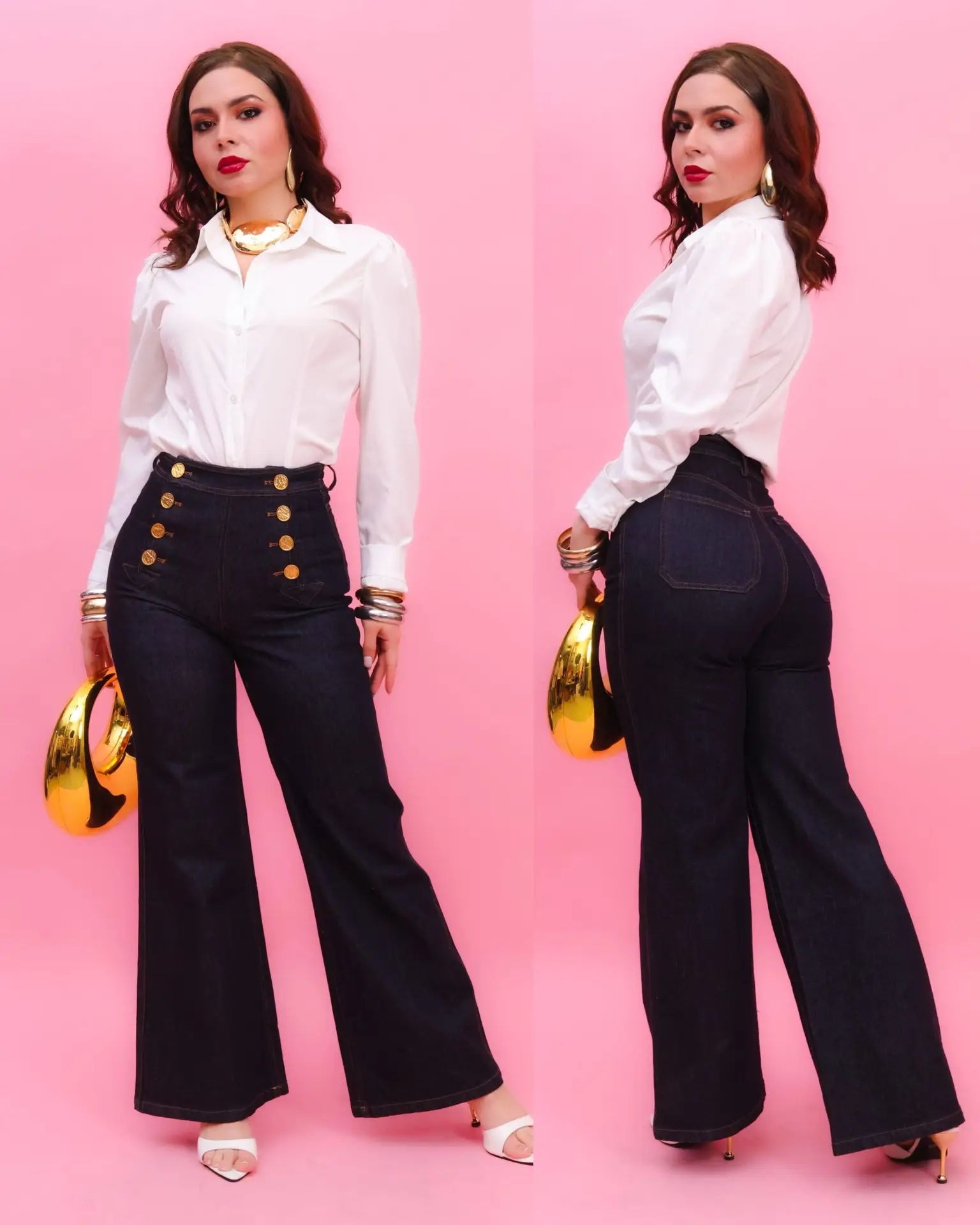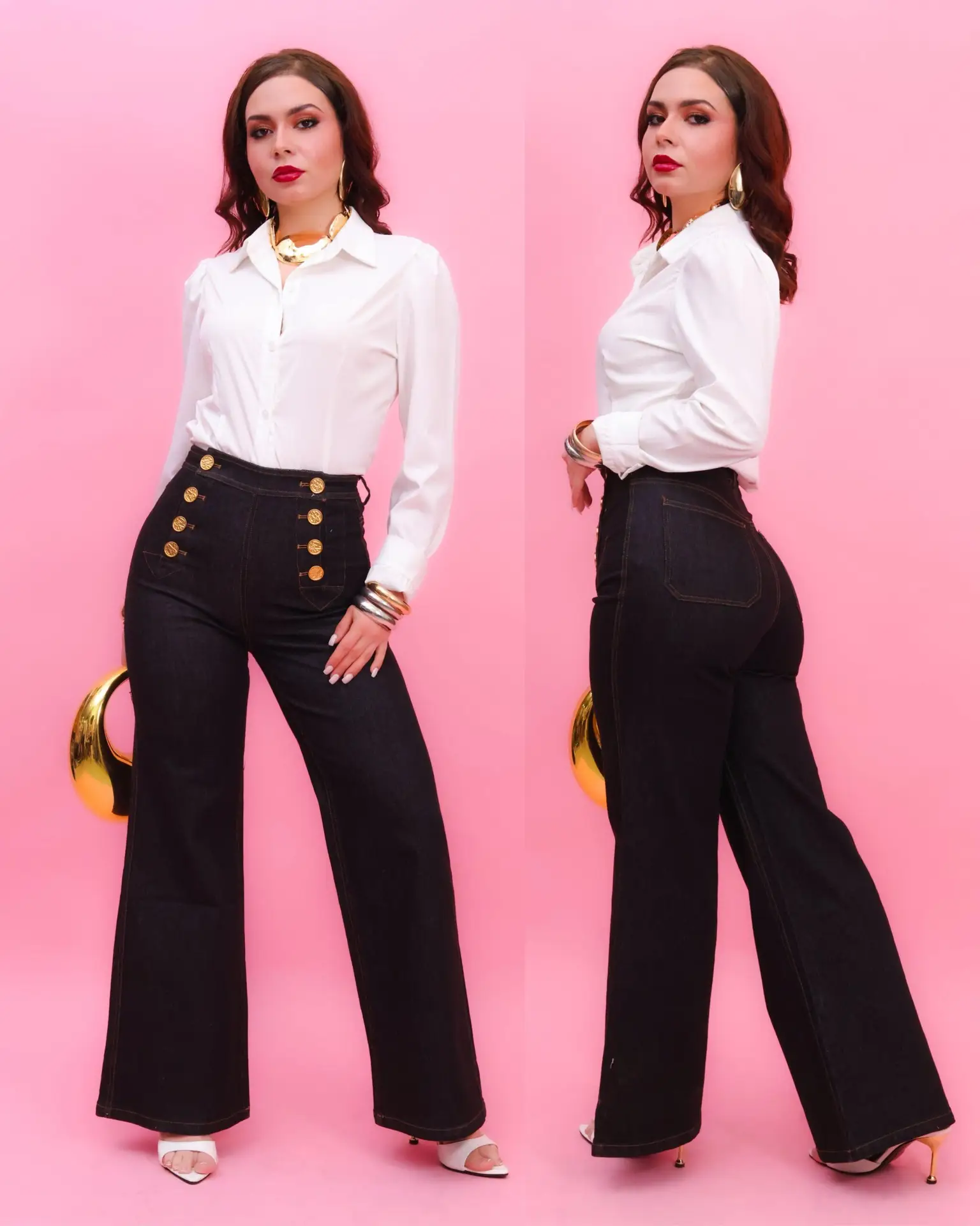PANTALON DE VESTIR DE MARINERO “BAGGY”. CON BOTONES EN COLOR DORADO TELA MEZCLILLA, UNA PRENDA PERFECTA Y COMODA PARA CUALQUIER OCASION